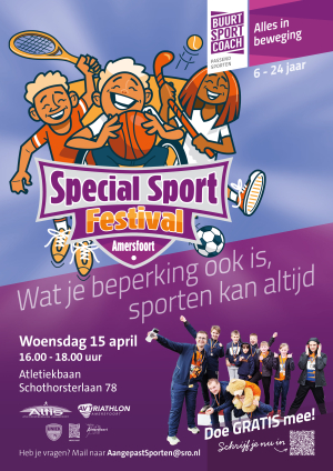 Op woensdag 15 april van 16.00 tot 18.00 uur vindt het eerste Special Sport Festival in Amersfoort plaats. Dit festival is bedoeld voor iedereen die geïnteresseerd is in sport, maar binnen het reguliere sportaanbod niet altijd goed zijn of haar plek vindt.
